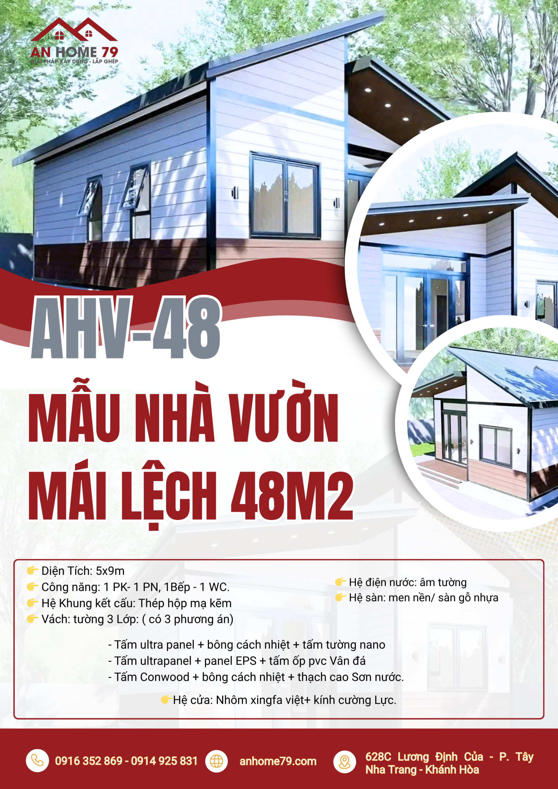 Mẫu Nhà Vườn Mái Lệch Tại Nha Trang 48m2 AHV-48 – Đẹp, Hiện Đại